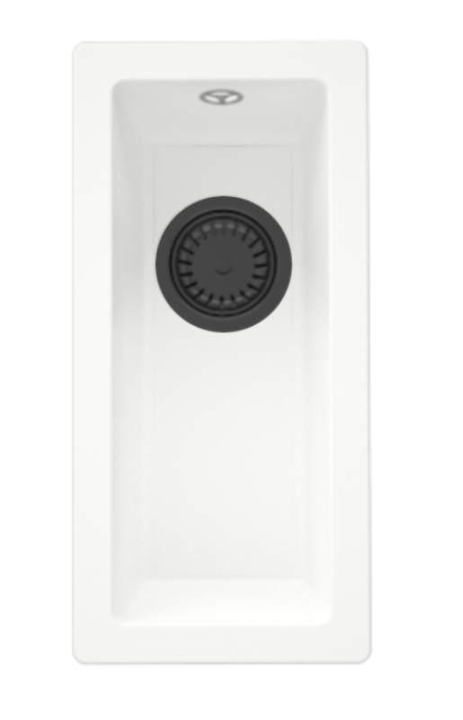 GraniteMy Universal Small White Granite Sink 17x40 cm white top mount, undermount, and flush mount with gun metal plug - 1208967897