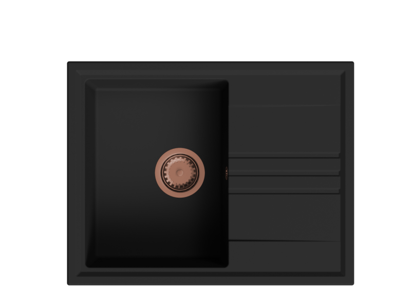 GraniteMy Vesi granite build-up black sink 64x50cm with drainer reversible with copper plug 1208967297