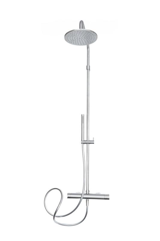 MURO TUA shower combination with thermostat and rain shower chrome M1.B11TH.CR stands for ultimate shower comfort, safety, and luxurious design. This complete surface-mounted shower set is ideal for those who want to enjoy a constant temperature and a true wellness experience in the bathroom every day.